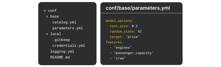 Configuration and parameters are externalized rather than embedded in code. By separating configuration from business logic, projects become more flexible and easier to adapt across environments. Parameters can be adjusted without modifying code, which reduces the risk of errors and simplifies experimentation, deployment, and collaboration across teams.